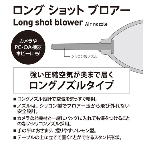 ●狙ったところへワンショット!エアーが奥まで届くロングノズルタイプ。