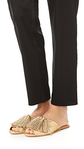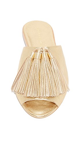 Product DescriptionTassels accent the vamp on these glam metallic Loeffler Randall slides. Padded footbed and leather sole.0