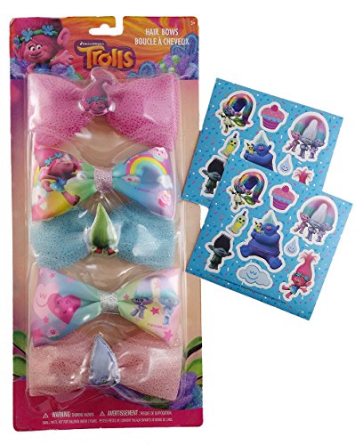 Your Hair With The Dreamworks Trolls Hair Bow 5pk Set! The Dreamworks Trolls Hair Bow 5pk Set Is A Cute Addition To Any Little Girl's Accessories! This Set Comes With 5 Colorful Hair Bows Featuring Lovable Trolls Characters Like The Princess Poppy. Your Little One Will Love The Glitter Designs Of These Hair Bows! The Dreamworks Trolls Hair Bow 5pk Gift Set Is The Perfect Present This Holiday Season For Young Fans Of The Hit Movie Trolls! Includes 2 - Trolls Sticker Sheets Featuring 9 Stickers Each Sheet.Feature