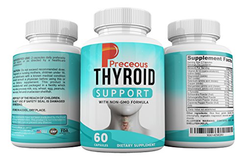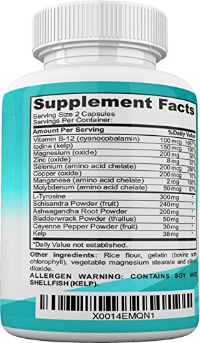 You could be having problems with sleep, weight, or mood swings and yet you haven't been diagnosed with any disease. This is because your thyroid gland may not be up to the mark. You should consider using thyroid support. This is an all natural dietary supplement that nourishes the thyroid gland and helps maintain the normal thyroid hormone production level. The thyroid gland plays several crucial roles in the body and determines your overall well-being. The gland is responsible for weight control, weight management, mood, cardiovascular health, metabolism and body temperature Contains Vitamin B-12, iodine, zinc oxide, Selenium, copper oxide, manganese, molybdenum, L-Tyrosine, Schisandra powder, etc Precautions • Keep out of the reach of children • Do not exceed the recommended dose • Not intended for pregnant or nursing mothers • Do not use the product if you have a medical condition • Not intended for children under the age of 18 years • Do not use the product if the seal is broken or missing • The facility used to manufacture and package the product also processes soy, milk, shellfish, peanuts, tree nuts, etc. • Do not use the product if you are allergic to soy or shellfishFeature