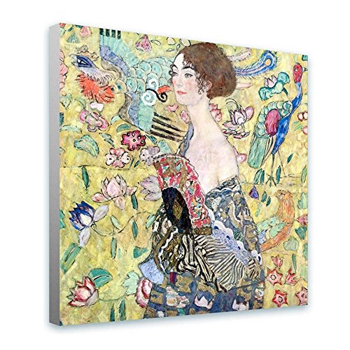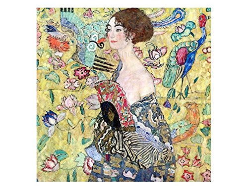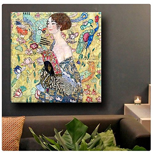 ALONLINE ART SYNTHETIC CANVAS NOT FRAMED GUSTAV KLIMT LADY WITH A FAN 31"X31" - 78X78CM REPRO REPRODUCTION PHOTO PRINTS FINE ART POSTER PHOTOS WALL ART GICLEE DECOR GALLERY