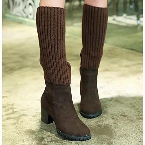(WKIDWX)/Women's/Boots/DIRECT FROM USA/Women's Shoes Knit Spring Fall Comfort Fashion Boots Boots For Casual Brown Black