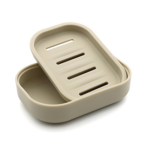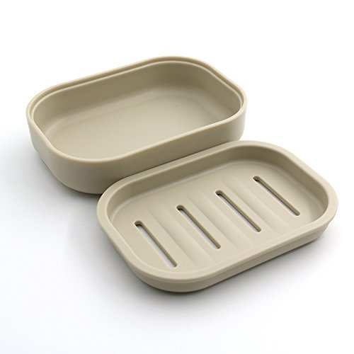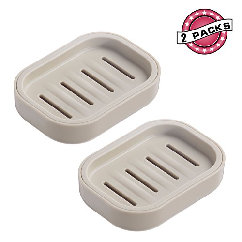 Uviviu PP Plastic Soap Box Soap Container Keeps Soap Dry Easy Cleaning Drain (Khaki 2 pack)