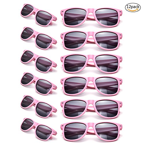 12 Packs Wholesales 80's Retro Style Neon Party Sunglasses 400 UV Protection for Party Favors,Photo Booth Prop,Goody Bag Favors,End of Year Giveaway,Birthdays Gifts for Mam & Women (12 Pink)