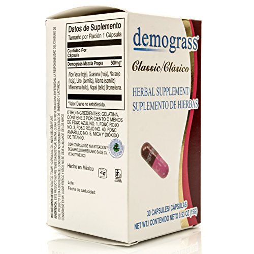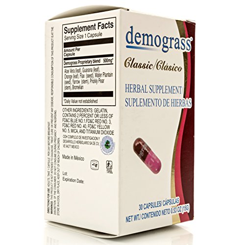 Demograss Classic 30 Day Supply is an all natural supplement that has more than a Decade of Satisfied Customers. With new FDA Compliant Packaging in English and Spanish - You get the Same ORIGINAL Demograss formula with Pink and Burgundy capsules you're used to. Demograss is a 30 Day supply that has been used for natural weight management and is direct from CIDH. ✔ Same Formula, Same Capsules, New Packaging in English and Spanish to comply with FDA Regulations for Natural Supplements. ✔Take just 1 capsule per day before breakfast. Drink plenty of water during the day and consume potassium rich food or a Potassium supplement like KPlentish Moringa to avoid any muscle aches.====== Demograss Clasico para 30 Dias. Suplemento de Perdida de Peso 100% Natural - La Formula Original y Autentica de Demogras para venta en Estados Unidos. ✔ La Misma Formula, Mismos Ingredientes y Las Mismas Capsulas en su Nueva Caja para Venta en Estados Unidos. Con Ingredientes en Ingles/ Espanol ✔ Toma 1 Capsula al Dia Antes del Desayuno. Recuerda de tomar suficiente agua durante el dia y comida rica en Potasio o un suplemento como KPlentish Moringa para evitar dolores musculares o pequenas molestias.Feature