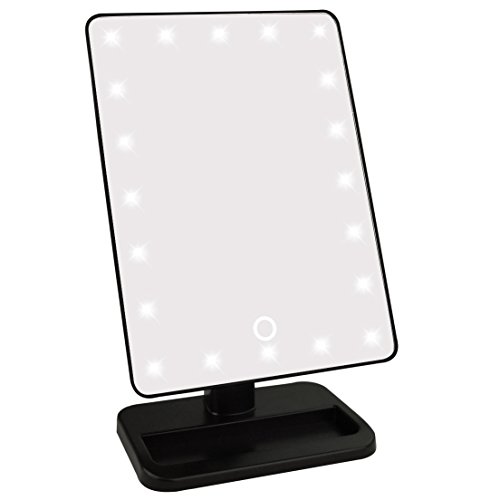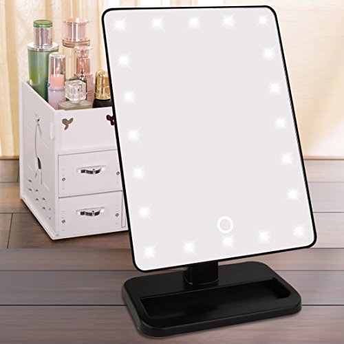LED Lighted Vanity Mirror: With built-in 21pcs adjustable LEDs, this vanity mirror provides a exact reflection of your face and helps with a most perfect application of makeup in the dark or poorly lit areas.