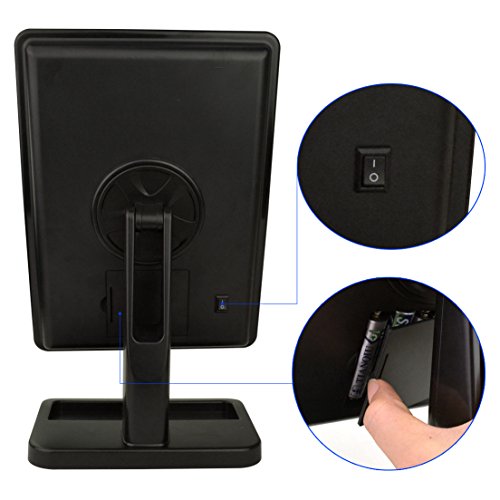 TOUCH SCREEN & BATTERY POWERED : This mirror is operated by a touch sensor on the middle and powered by 4pcs AA batteries needed (not included) which makes it quite portable, no wiring issues. Turn off the power switch when you are not using.