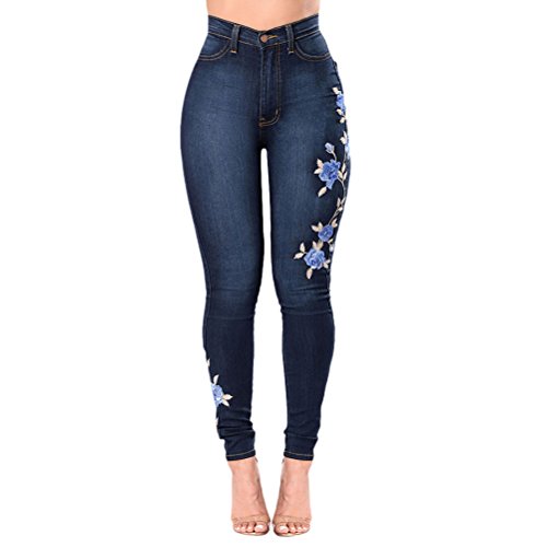 -. Title : Zhhlinyuan ファッション Womens Embroidered Stretch Blue High Waist Denim Skinny Jeans Pants for Ladies Butt Lifting