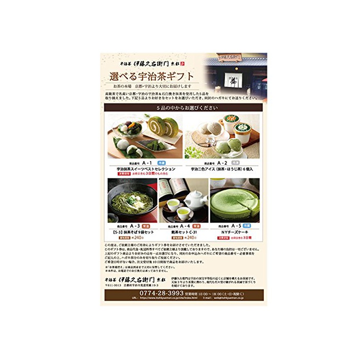 쿄토 우지다 이토구 우에몽(위문) 이토구 우에몽(위문) 녹차 스위트 카탈로그 상품권 집안끼리의 축하 행사 답례 우지다 다옆(소바) 아이스 치즈 케익