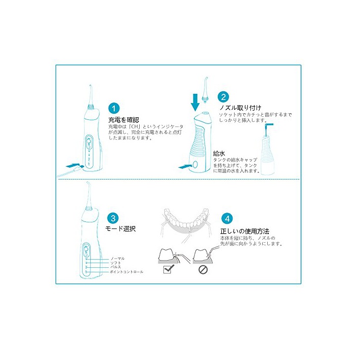 원본상품명: NURSAL 口腔洗器 四つモド 無接点充電 ウォタピック 2分間自動電源オフ 間ケア 口臭防止 IPX7 防水【24月保期間】 日本語明書付