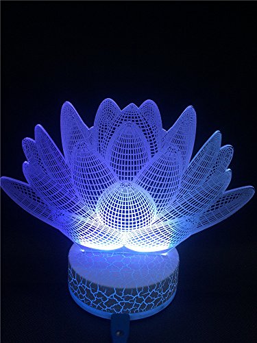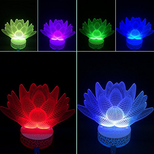 -. Title : 3D Illusion Led Night Light Lotus Flower By AZALCO
