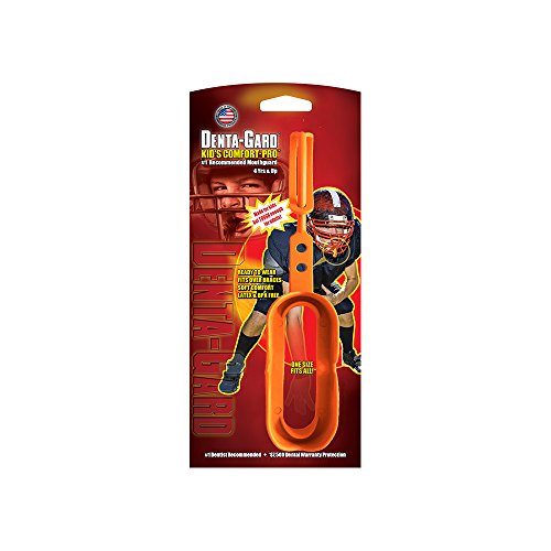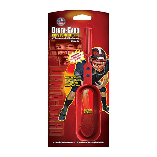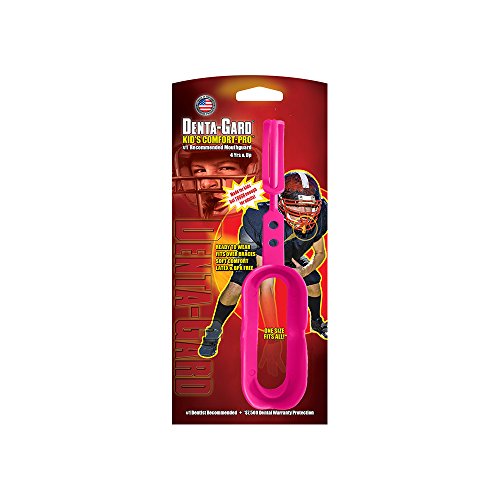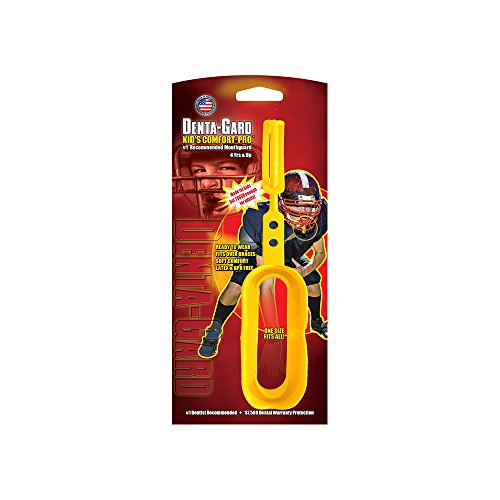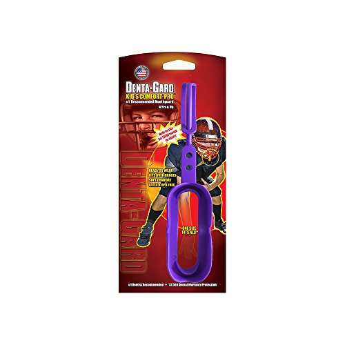 Studio : DentaGard, LLC Publisher : DentaGard, LLC Binding : Misc. Product Description Denta-Gard Kid's Comfort Pro - #1 Recommended Mouthguard One size fits all. *EXTREME IMPACT PROTECTION Made for kids but tough enough for adults Soft-Flex Comfort means you can wear it for hours *EASY-FIT FLEX STRETCH Fits any size, shape age - even adults Fits over braces for full protection Breathe speak easily *HIGH PERFORMANCE No breathing restrictions Maximum oxygen intake Meets sports safety standards for the NCAA NFHS *PREMIUM QUALITY Latex BPA free Surgical grade quality FDA approved materials #1 recommended by dentists Orthodontists Made in the USA $7,500 dental warranty *HASSLE FREE Ready to wear No molding. No boiling Live in to speak *COVERS BOTH UPPER LOWER TEETH Folds for double protection Protects top and bottom teeth and involved soft tissue 0