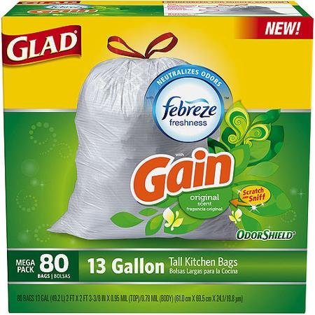 -. Feature : Glad Gain Febreze Original Scent, 13 Gallon Tall Kitchen Bags, 80 Bags