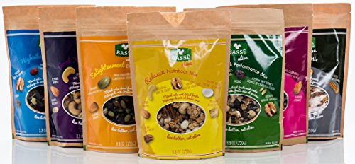 -. Feature : Dried Fruit Healthy Pack by Basse - Pitted Prunes, Dry Figs, AP.R.Icots, Jumbo Raisins and Cranberries that make a good snack full of nutrition. Fresh and juicy for an incredible taste. / Healthy Snack Pack - Salted Pistachios & Cashews by Basse, Nut & Seed Mixes by Sahara, Royal & Deluxe, Dried Fruit & Nut Mixes by Exotic & Paradise, Cranberry Trail Mix & Smoky Almonds. / Superfood Pack - Basse Alive Mix, Good Karma Mix, Highvibe Power Mix, Relaxing Mix, Good Spirit Mix, Serenity Savory Mix, Buenavibra Performance Mix. Super mixes for super energy! / Spicy Peanut Mix - Nutsterz Bloody Mary Peanuts, Habanero Lime Peanuts, Thai Chili Coconut Peanuts, Jalapeno Pepper Peanuts, Sweet Chipotle Peanuts, Sriracha BBQ Peanuts. True nutty delight! / Serenity Savory Mix - Superfood just got a spicy hint with peanuts, BBQ toasted corn nuts tossed in brown sugar, tomato powder, garlic powder, dried molasses and paP.R.Ika extract. Tasty Treat!