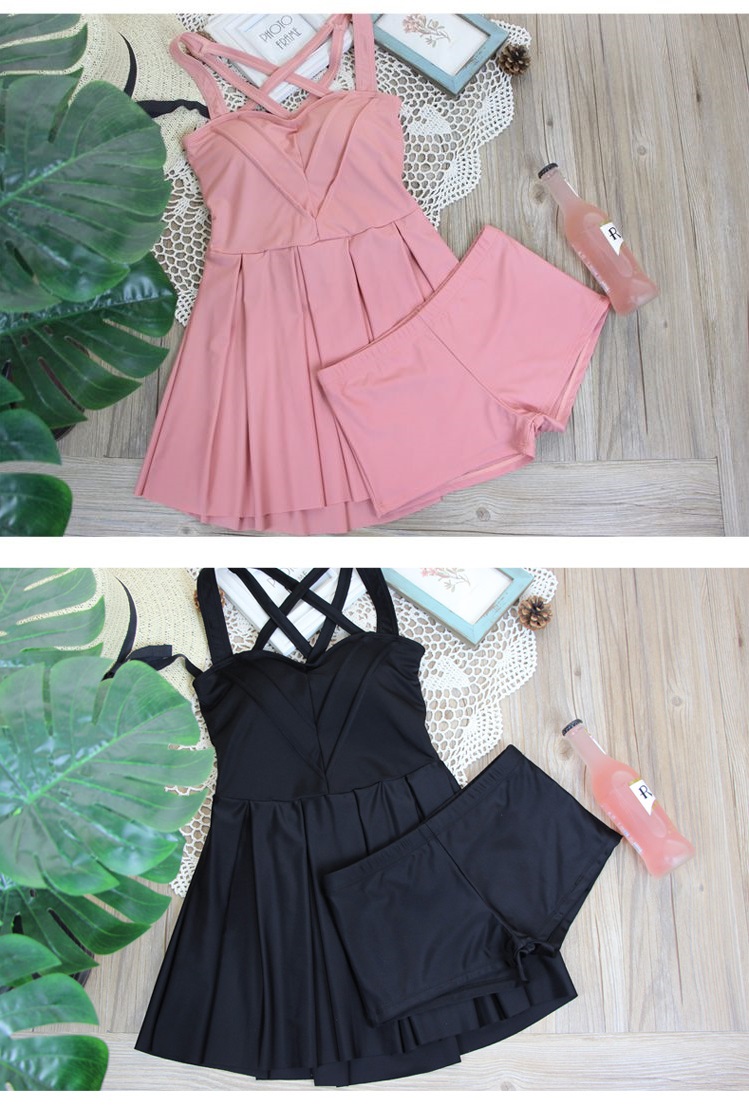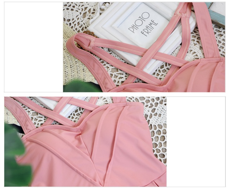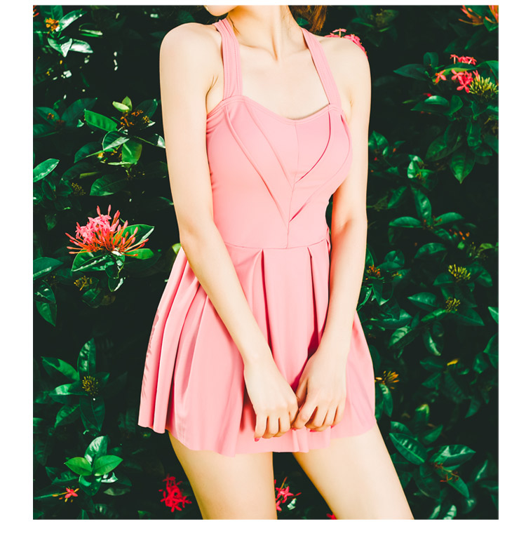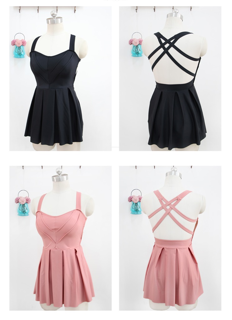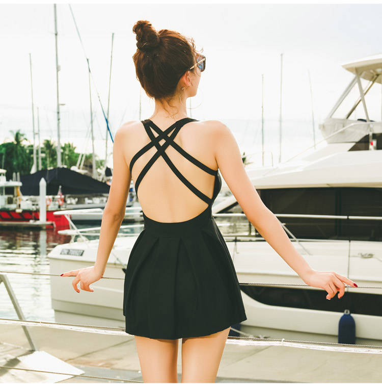 背中が大きく開いたバッククロスデザインで、セクシーな印象も。