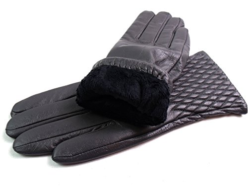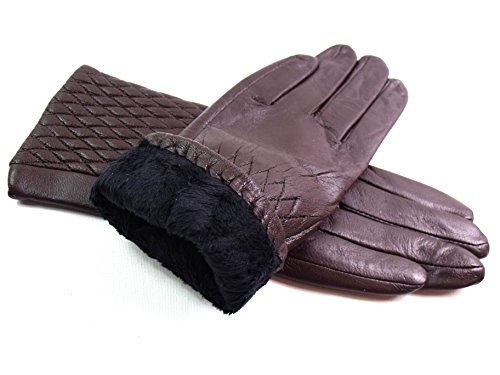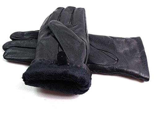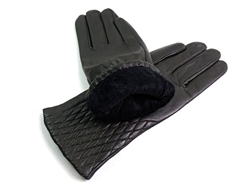 | The Leather Emporium Men's Faux Fur Lined Gloves Winter Warm Diamond Detail |
