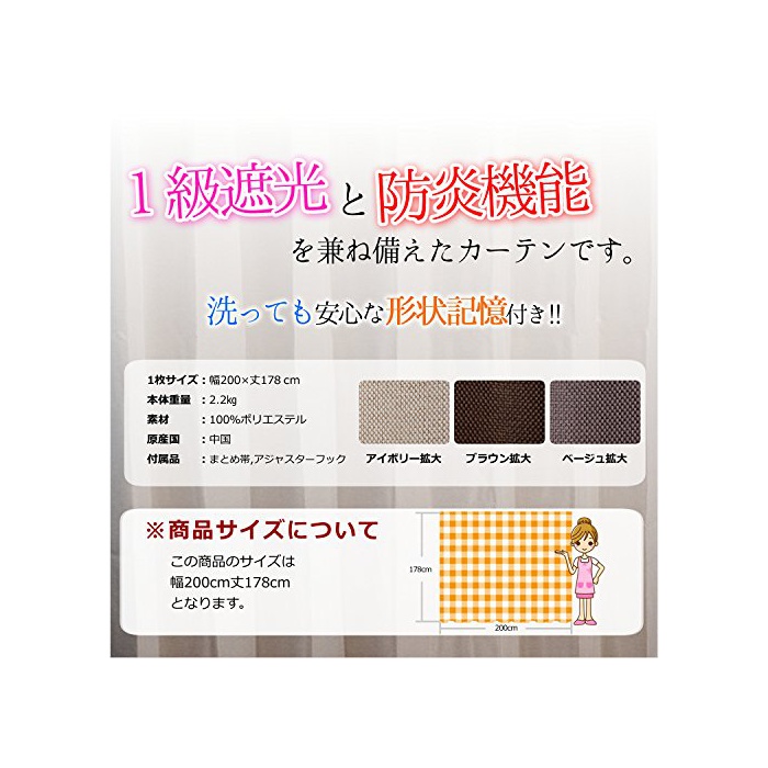 원본상품명: HarukaStyle(ハルカスタイル) 形?記憶 1級遮光 防炎カ?テン 1枚組 レイクサイド 幅200×丈178cm アイボリ?