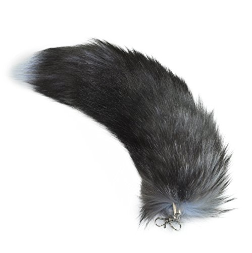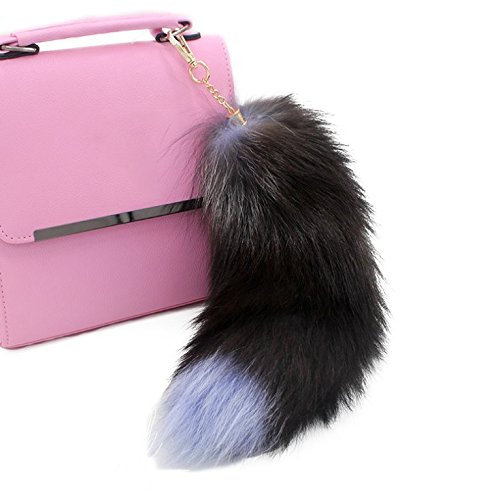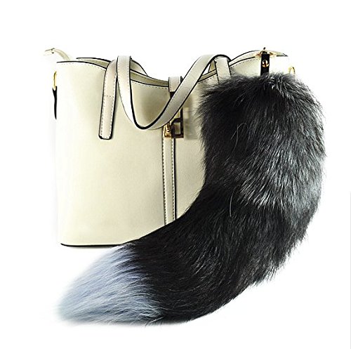 BeautyMood 43cm Supper Huge and Fluffy Golden Gray Fox Tail Fur Cosplay Toy Handbag Accessories Key Chain Ring Hook Tassels