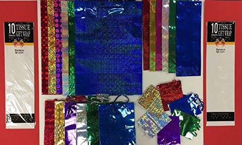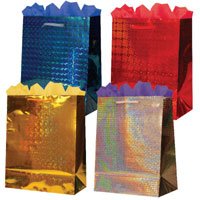 CHRISTMAS HOLOGRAPHIC GIFT BAGS SMALL MEASURE 18'' X 13'' - 4 CT & BONUS BUYS !! FREE !!! GIFT WRAPPING TISSUE 10 CT