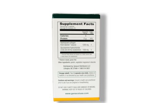 -. Feature : Helps Maintain Healthy Joints. / Improves Quality of Synovial Fluid / Supports Healthy Cartilage. / Bioactive Complex of Hydrolyzed Collagen & Glucosamine Hydrochloride. / Unique Formula Includes A Complex of Several Amino Acid Sequences Conceived by Using The AminoLock Sequence Technology.