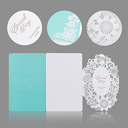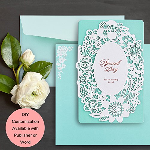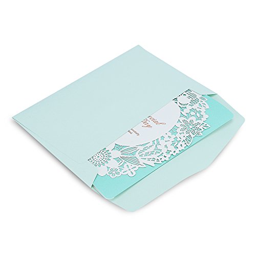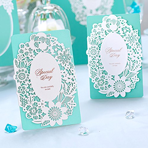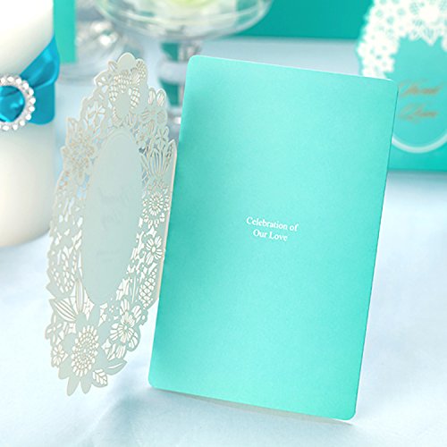 Weddingbob 20Pcs Laser Cut Wedding Invitations Cards Kit for Bridal Shower Dinner with Envelopes and Printable Paper White Hollow-carved Lace with Tiffany Blue Cards and Foil Stamping Words (20)
