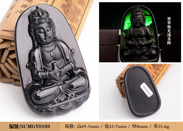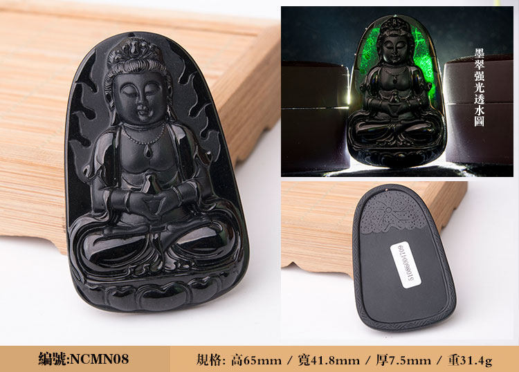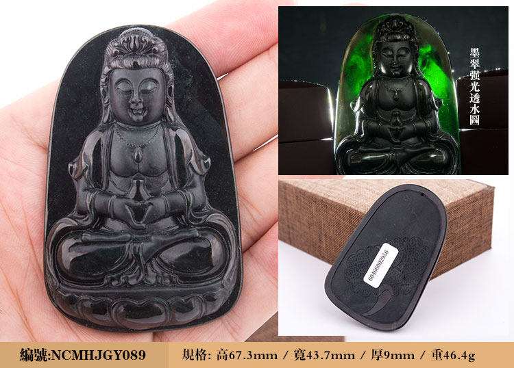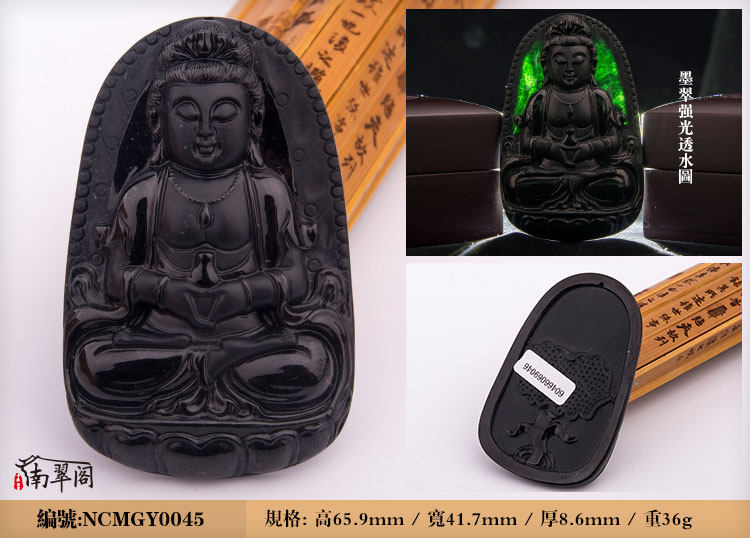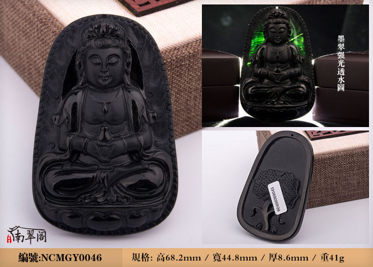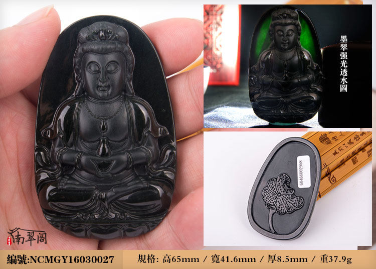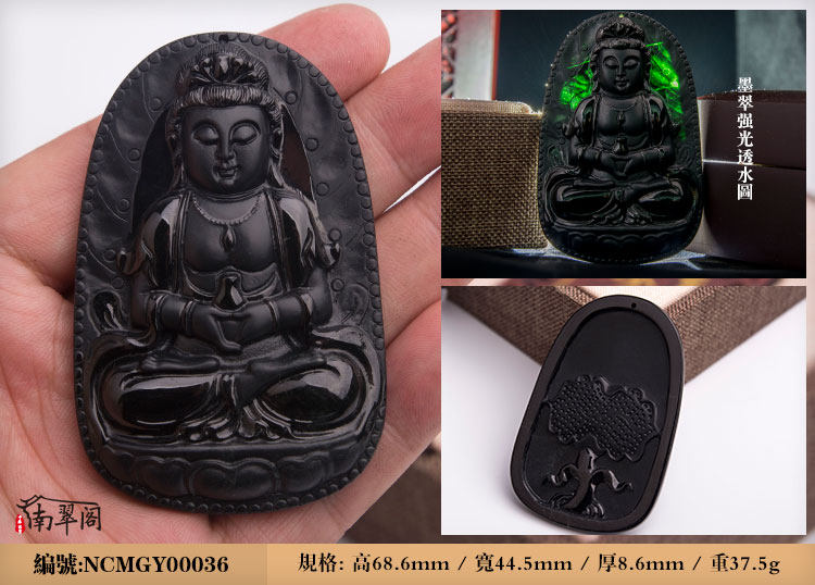 南翠阁 翡翠墨翠观音吊坠男挂件天然缅甸高端翡翠A货墨玉千手观音