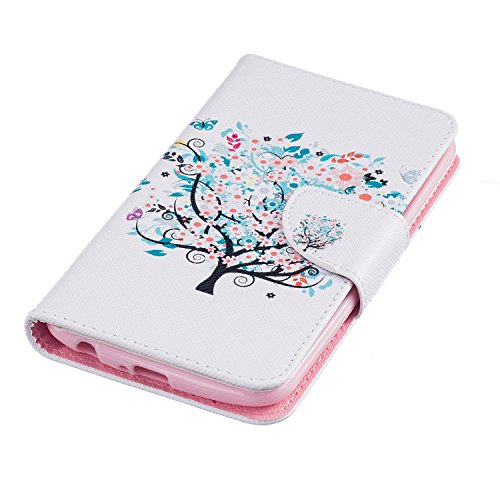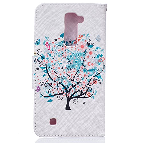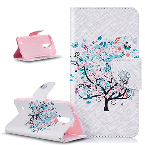 LG K10 Case,LG K10 Cover,ikasus Colorful Painted Premium PU Leather Fold Wallet Pouch Case Flip Stand Credit Card ID Holders Case Cover for LG K10,Butterfly Flower Cherry Trees