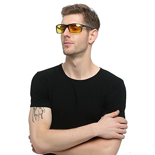 -. Feature : 【MATERIAL】:Aluminum-Magnesium Frame (Strong, Lightweight), High Elasticity, and Durable).Amber (yellow) lens with Anti-Reflective (AR) coating; Premium quality resin from German technology. / 【PRODUCTS DIMENSION】: Lens width:64 mm (2.52 inches);lens height:37 mm(1.46 inches);arm length:123 mm(4.84 inches); bridge width:12 mm (0.47 inches); frame length: 140 mm (5.51 inches) / 【MULTIPURPOSE ACTIVE WEAR】:More than glasses for night driving, these sport glasses can be used for for Cycling, Running, Hiking, Fishing, Skiing, Climbing, Trekking, Motorcycling, just to name a few. It touches virtually every out door sport activities you can think of. / 【BUY WITH CONFIDENCE】 : We are confident that you will get the best out of this high quality eye glasses that features high quality lenses / 【NIGHT VISION,SUPERLIGHT, STYLISH, DURABLE, CLEAR AND COMFORTABLE 】: These are anti-glare glasses for night driving. Polarized lenses can reduce glare from the headlights of the vehicles, street lamps and other reflective surfaces by filtering light coming from different angles. The amber (Pale Yellow) lenses enhance contrast in low to extremely low light conditions, haze, or other circumstances. making colors and objects appear clearer, so you can see the details on the road while you