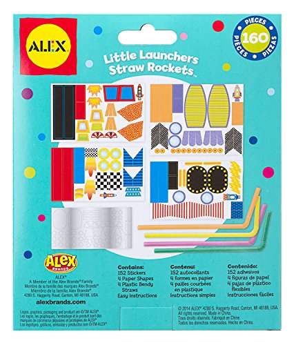 ALEX Toys POPS Craft Little Launcher Straw Rockets contains everything your little one needs to create and play with their own toy. POPS Craft kits are compact sized (7.25in. x 6in.) complete craft kits. Kids can make things to wear, display or play with. Great to give out as prizes and thank you gifts, they’re also ideal for gift baskets and stocking stuffers. Includes 4 plastic bendy straws, 4 paper punch outs, 152 stickers and easy instructions. Recommended for children 5 years of age and older.Feature