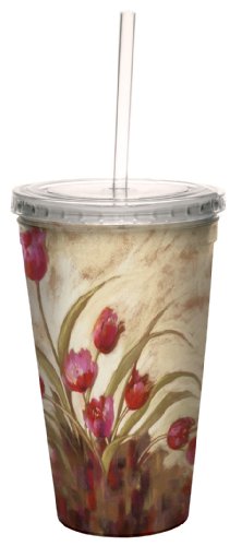 Tree-Free Greetings cc33690 Tulips Landscape by Nel Whatmore Artful Traveler Double-Walled Cool Cup with Reusable Straw, 16-Ounce