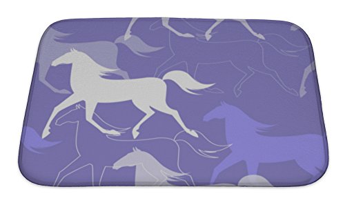 Gear New No Slip Microfiber Memory Foam Pattern with Running Horses Purple Color Bath Rug Mat, 24" X 17"