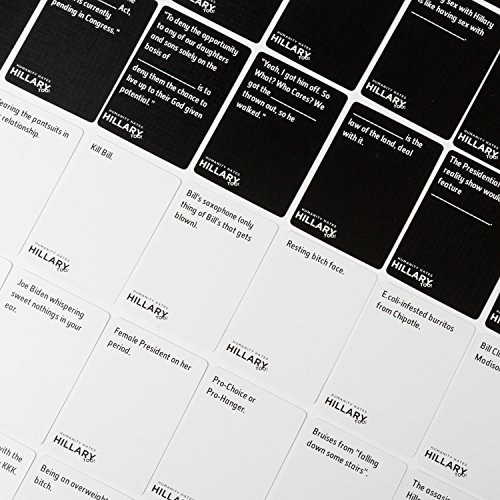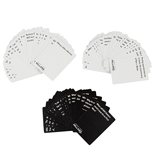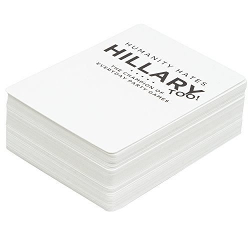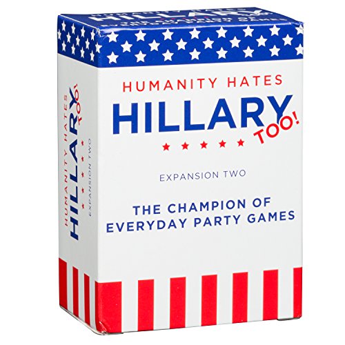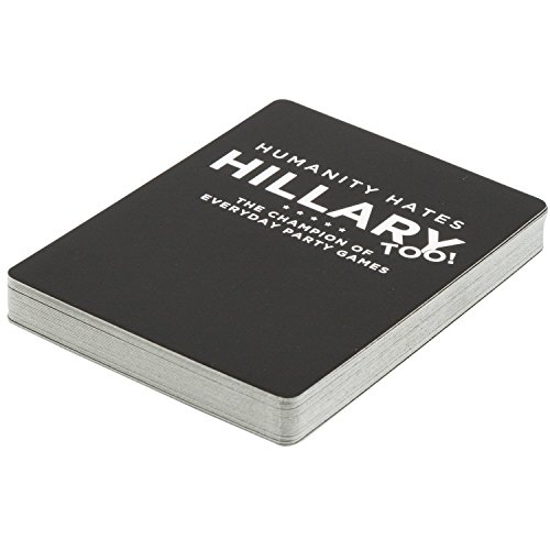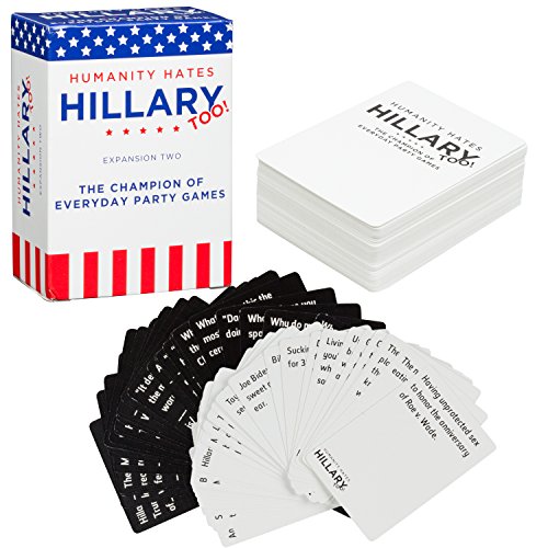 Humanity really does hate Trump and the whole 2016 Election, and now Hillary Clinton. Horrible People can now bring their inner selves to a new level in a hilarious new party game expansion- HUMANITY HATES HILLARY, TOO. No, this is not endorsed in any way by Trump or Hillary themselves, nor Cards Against Humanity, which is a registered trademark of Cards Against Humanity LLC. Nor does it reflect the opinions of its esteemed creators, SCS Direct Inc. But it is the freakin' most fun you will have next to inviting Trump to dinner himself. This expansion set contains 80 White cards, and 30 Black Cards, and fits seamlessly with the Humanity Hates Trump Base Set and Cards Against Humanity party Game and other similar games. This is an expansion set best played with a compatible Base set. If played with the Humanity Hates Trump Base set, it contains completely different cards so no duplication! Each card is designed to be politically themed from whatever seems to come out of Hillary's mouth, or may not have yet come out but is coming. You'll no longer need to buy a polygraph machine .. you have the truth here!Feature