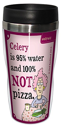 Tree-Free Greetings 16-Ounce Sip 'N Go Stainless Lined Travel Mug, Aunty Acid 100% Not Pizza (SG78466)