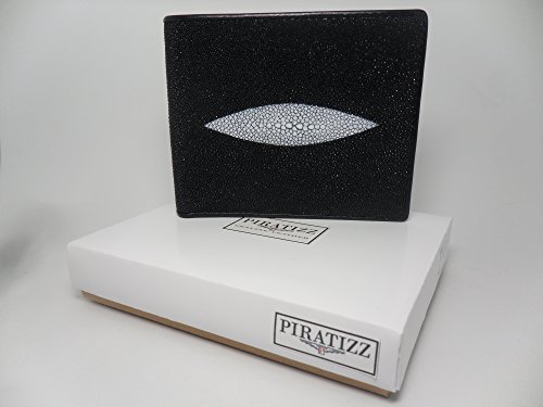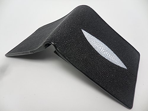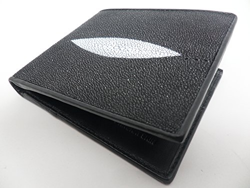 -. Title : Genuine Stingray Skin Leather Wallet Men Bi-fold Black w/ Left Flap 6 Card Slots
