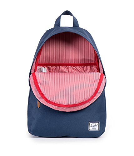 Classic backpack with signature striped lining featuring fully-padded fleece-lined laptop or tablet sleeve