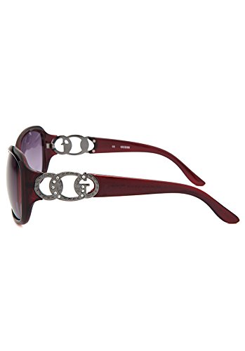 The ultimate in chic accessories, these Guess sunglasses feature a lacquered, crimson red butterfly frame with silver-tone G logos in an intricate design making up the arm hinges, making these ladies' shades a must-have for any fashionista's collection. Crystals encrusted in the logos put the final sassy flair on these fabulous sunglasses.Feature