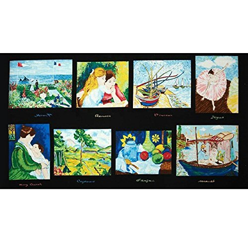 Day at the Museum Impressionist Quilt Block Fabric Panel (Great for Quilting, Sewing, Craft Projects, Throw Pillows & More) 22" X 44" Wide