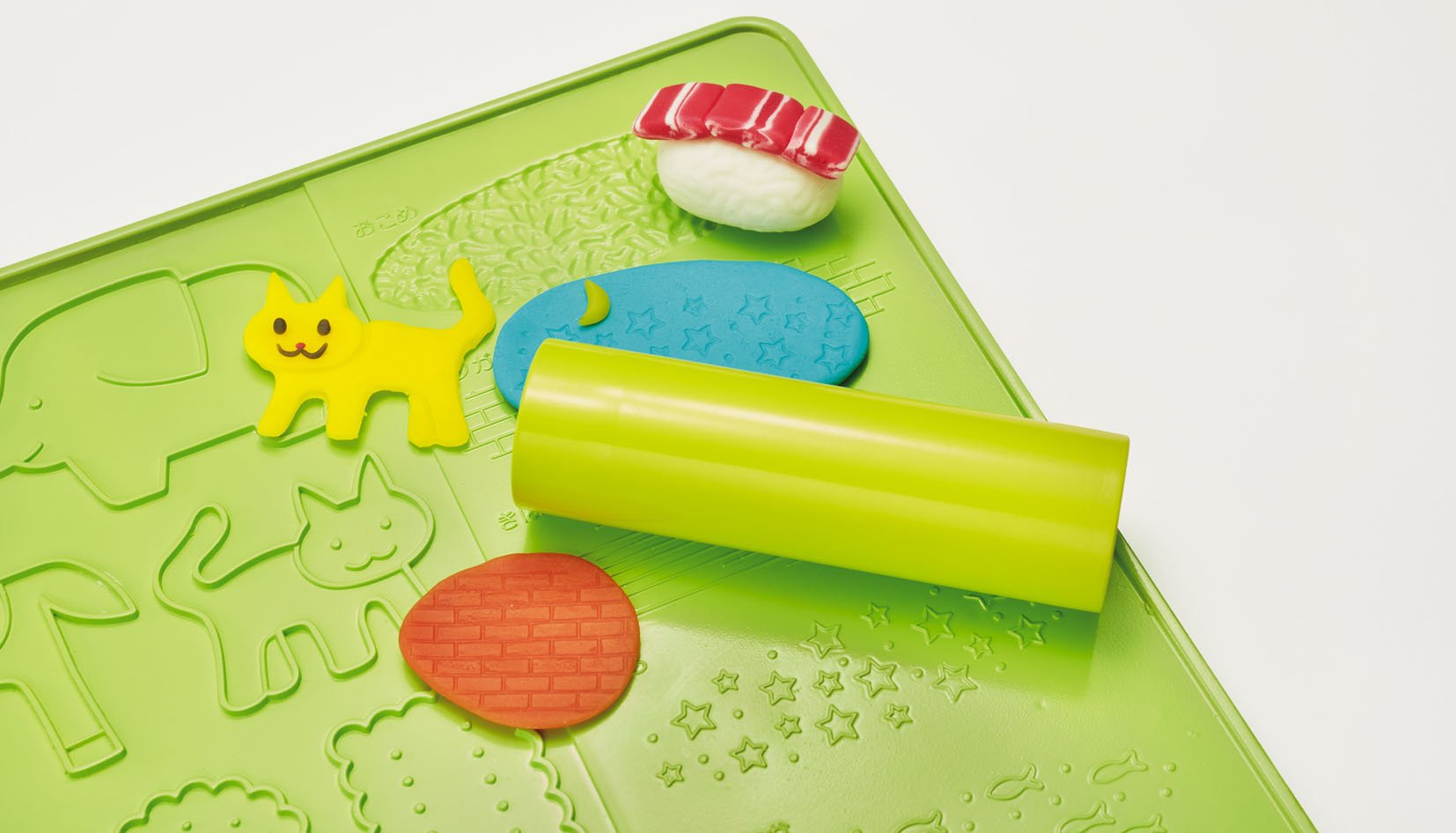 The surface of the dough board can be enjoyed with a dummy board, the back side can play extrusion play, pattern play, stamp play.