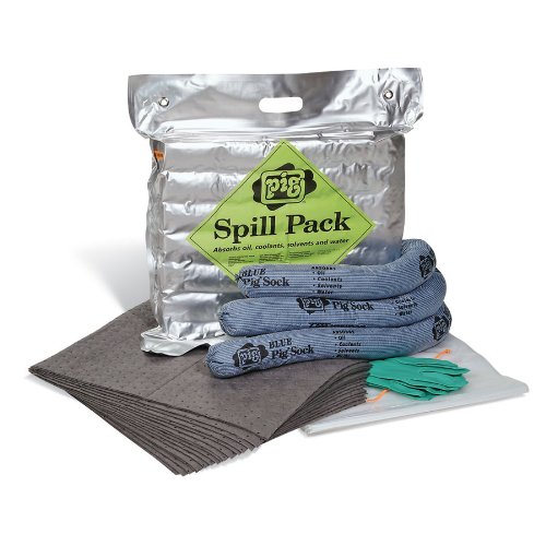 -. Binding : Misc. -. Brand : New Pig Corporation -. Feature : Red vacuum packaging keeps contents clean and dry and makes it easy to detect tampering / Highly-visible pack is easy to locate / Pig blue socks stop spreading spills; Pig mat absorbs quickly / Built-in handle and sturdy grommets make the pack easy to carry and hang / Stores easily behind a vehicle seat -. Label : New Pig Corporation -. Manufacturer : New Pig Corporation -. Model : KIT261 -. MPN : KIT261 -. NumberOfItems : 1 -. PackageQuantity : 1 -. PartNumber : KIT261 -. ProductGroup : BISS -. ProductTypeName : LAB_SUPPLY -. Publisher : New Pig Corporation -. Studio : New Pig Corporation -. Title : New Pig KIT261 25 Piece Spill Kit in Spill Pack, 4 Gallon Absorbency
