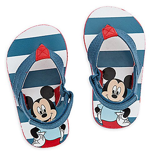 -. Title : Disney ディズニー 男の子用ベビー白x青ボーダーミッキーマウスビーチサンダル [並行輸入品]