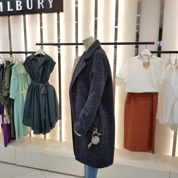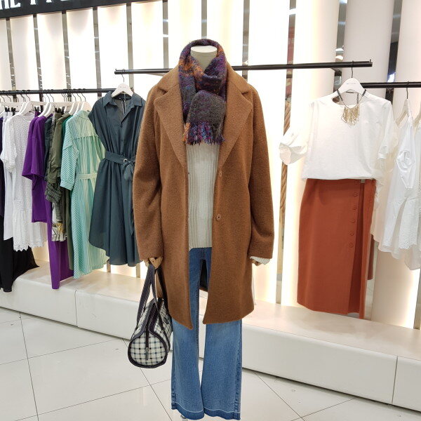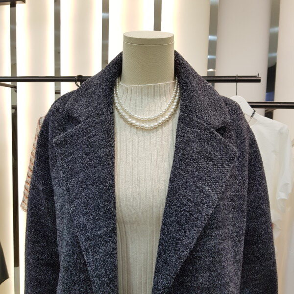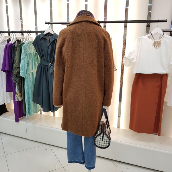 겨울 기본 모직코트입니다.조직이 곱슬곱슬하게 짜여져 단순하지 않으며 어깨선이 편하게 나온 스타일입니다.