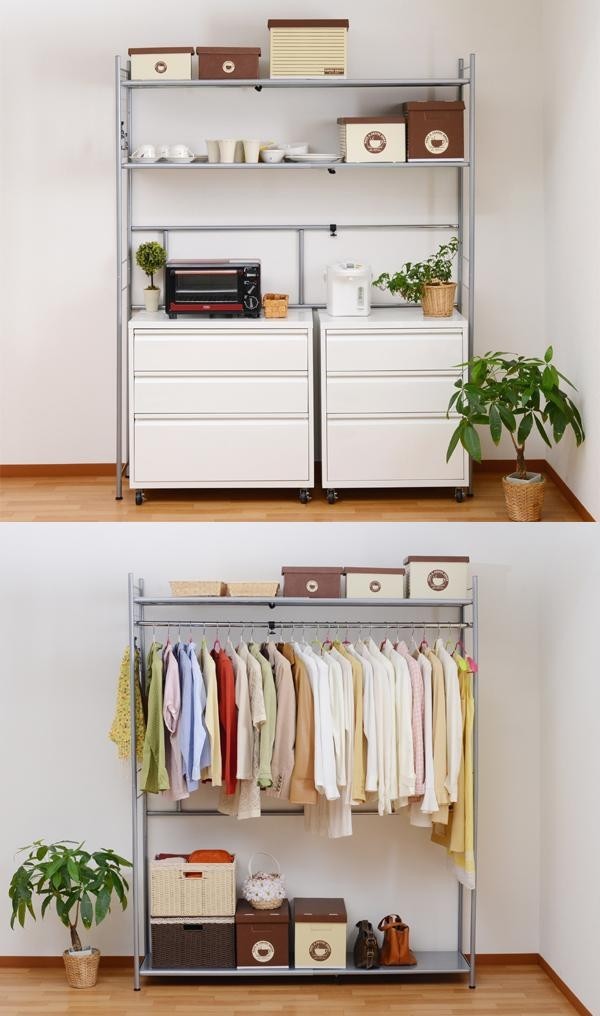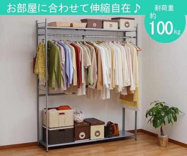 | 仕様 | 全体許容耐荷重:100kg(棚部分30kg×2本/ハンガー部分40kg) 組立式(所要時間約60分) 棚板・バー:可動式(5cm単位) |