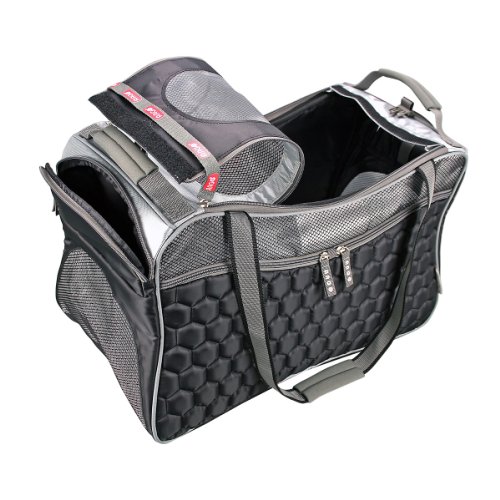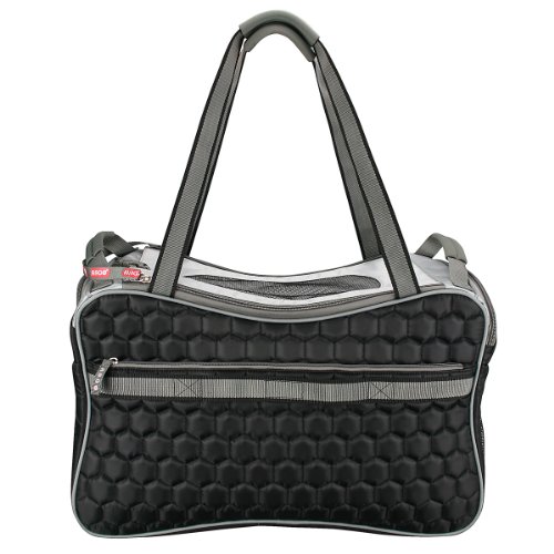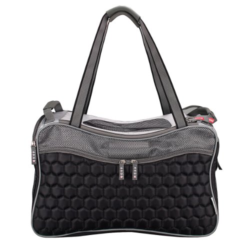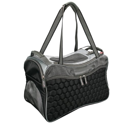 -. Feature : Airline approved pet carrier, Ultra-light weight plush diamond quilting material, 4 large zippered storage pockets plus a side peek opening / Rear fitting over uP.R.Ight lage handles for easy mobility, Smart strap for car seat belt to slide through / Top loading mesh with triple closure securities, Dual layer reinforced security mesh windows / Removable water-resistant cool padding, Recommended for pets up to 22 lbs / Measurements: 21-inch L by 12-inch W by 13-inch H