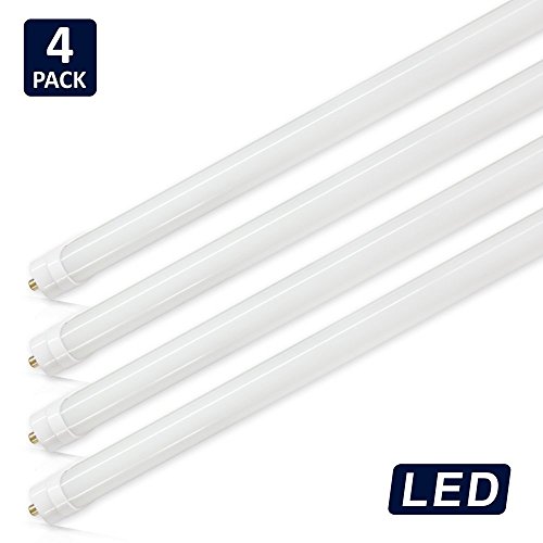 (Pack of 4) Barrina T8 T10 T12 LED Light Tube, 8ft, 44W (100W equivalent), 6500K, 4500 Lumens, Frosted Cover, Dual-Ended Power, Fluorescent Light Bulbs Replacement