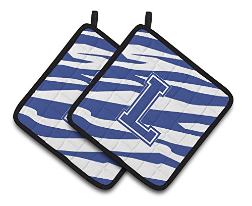 Caroline's Treasures Monogram Initial L Tiger Stripe Blue & White Pair of Pot Holders CJ1034-LPTHD, 7.5HX7.5W, Multicolor