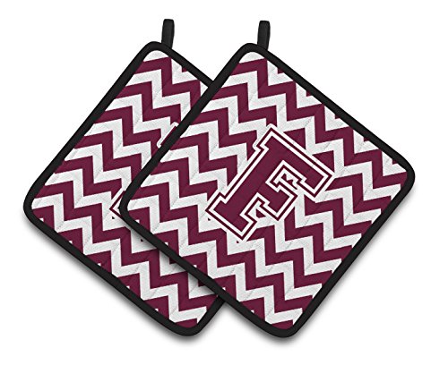 Caroline's Treasures Letter F Chevron Maroon & White Pair of Pot Holders CJ1051-FPTHD, 7.5HX7.5W, Multicolor