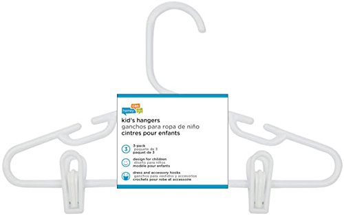 -. Feature : A must-have versatile, lightweight (26g) clothes hanger, perfect for child-size clothing in a 3-piece value pack / The large rod hook is designed to fit over any closet bar / Integrated accessory notches keep small dresses, tank tops, or even backpacks in place, plus hang belts nicely / A big help in the laundry room, these hangers are also great for air-drying clothes / Plastic clips are removable and adjustable, holds pants or skirts in place