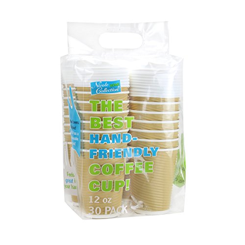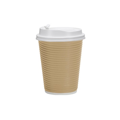 PREMIUM Disposable Hot Paper Cups With Lids, Double Wall & Ripple Insulation For Heat Protection, Tan, 30 Count - 12 oz.