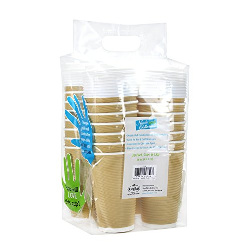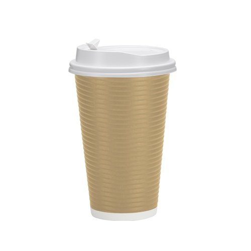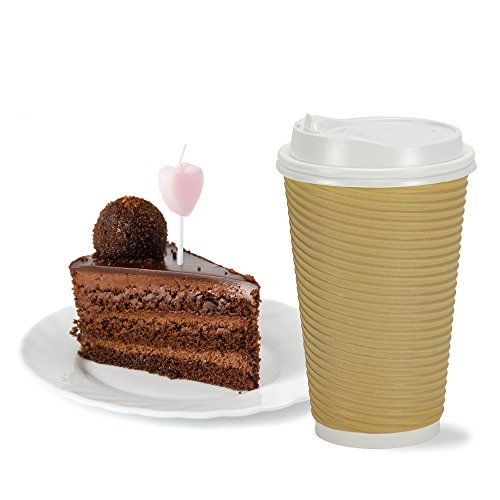 PREMIUM Disposable Hot Paper Cups With Lids, Double Wall & Ripple Insulation For Heat Protection, Tan, 30 Count - 16 oz.