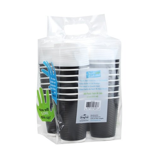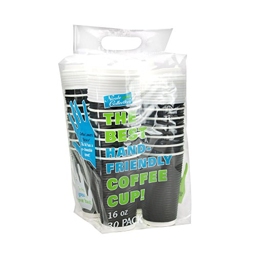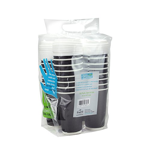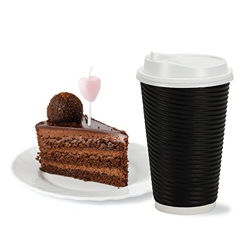 PREMIUM Disposable Hot Paper Cups With Lids, Double Wall & Ripple Insulation For Heat Protection, Black, 30 Count - 16 oz.